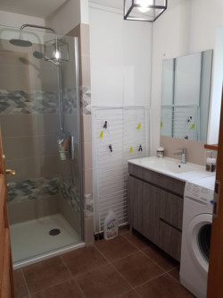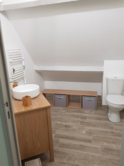 - Salle de bains 2 : Douche, vasque, sèche-serviettes, sèche-cheveux